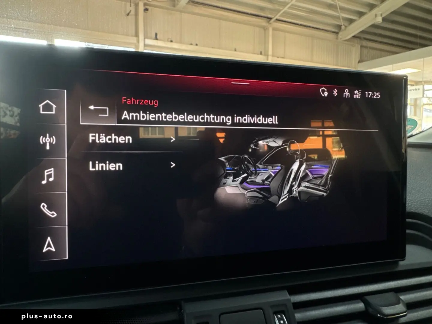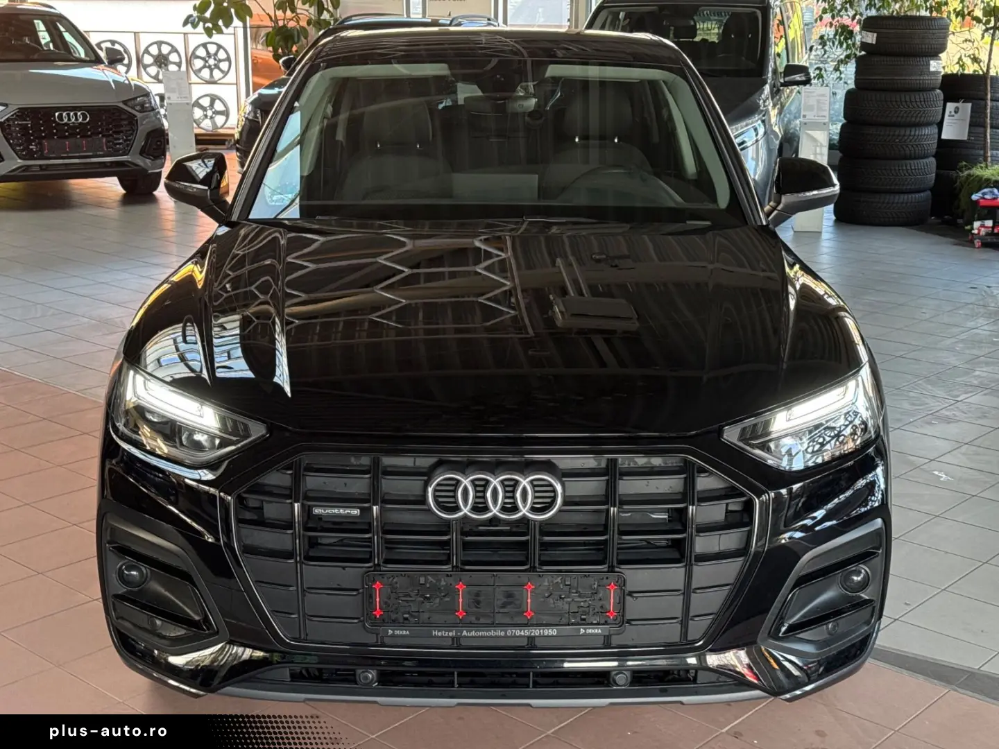 Audi connect (Internet-based services), Business Package, black fabric headliner, front and rear parking aid (APS Plus), contour/ambient lighting package (plus), 7x17 alloy wheels (10-spoke, for winter tires), 8x18 alloy wheels (5-arm star design), new car tire warranty, black styling package, reversing camera, special paint finish Brilliant Black, tinted rear windows (privacy glass)