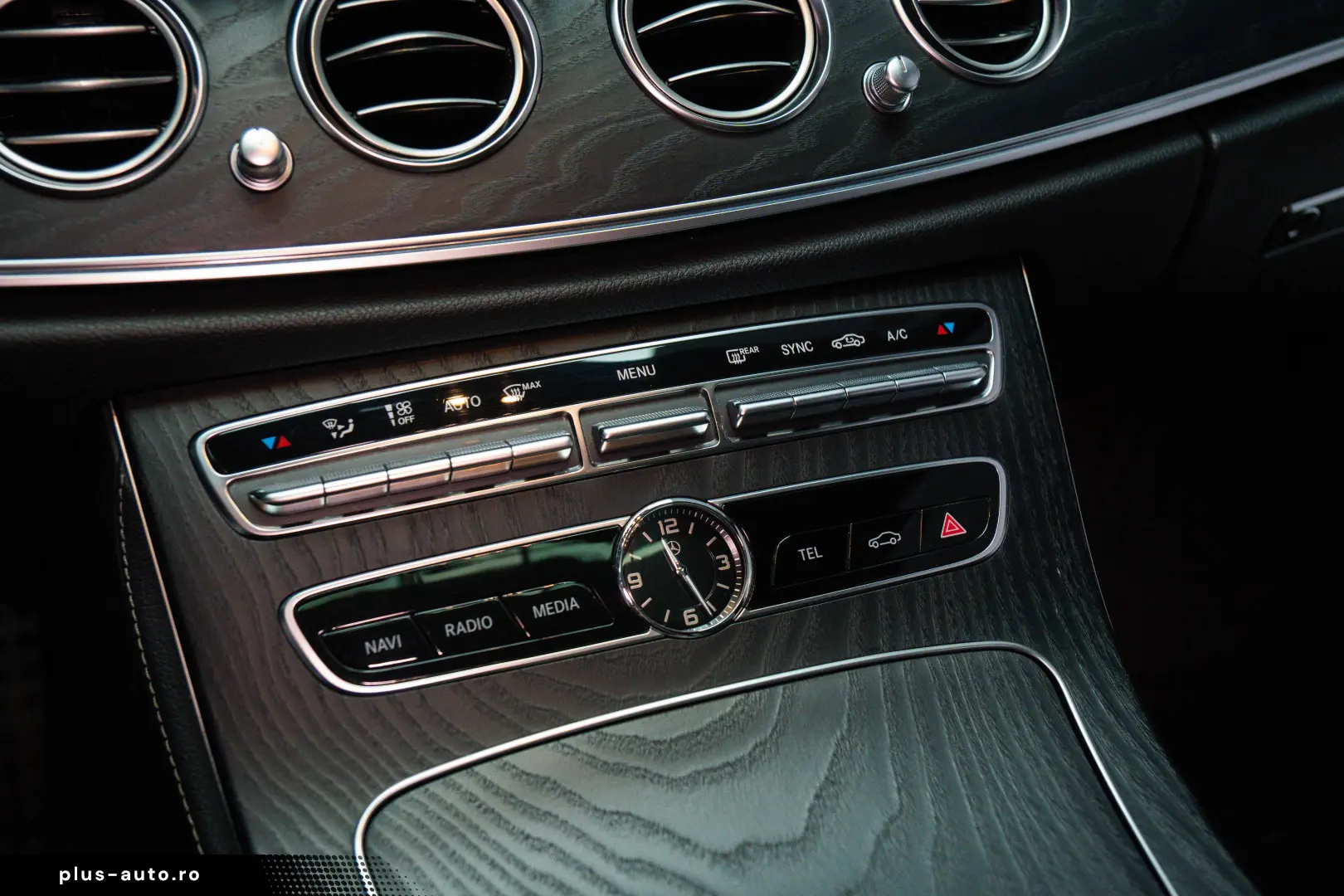 Consolă centrală din lemn de frasin negru cu pori deschiși (2A70)