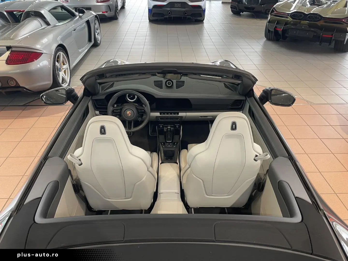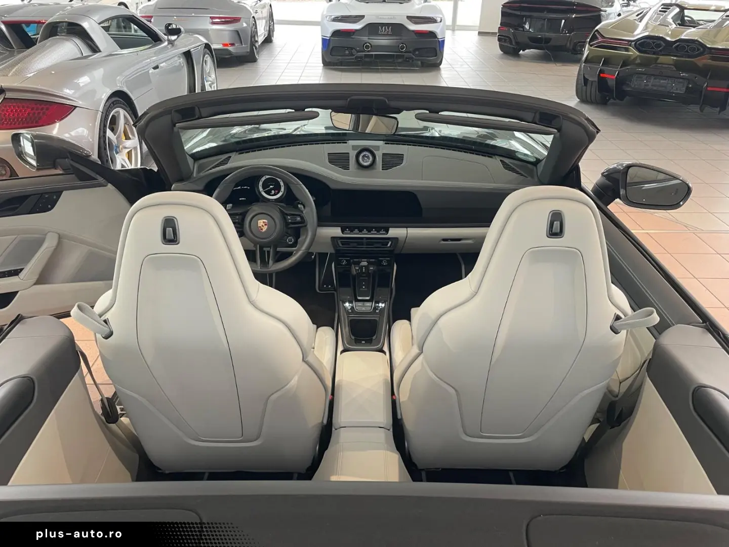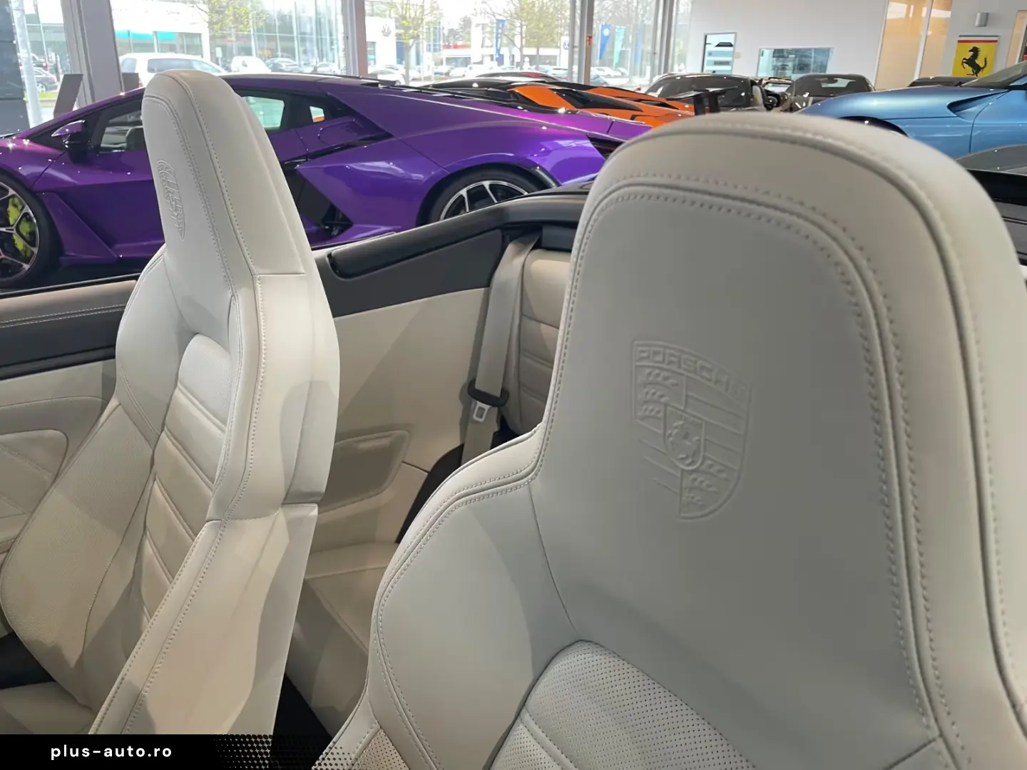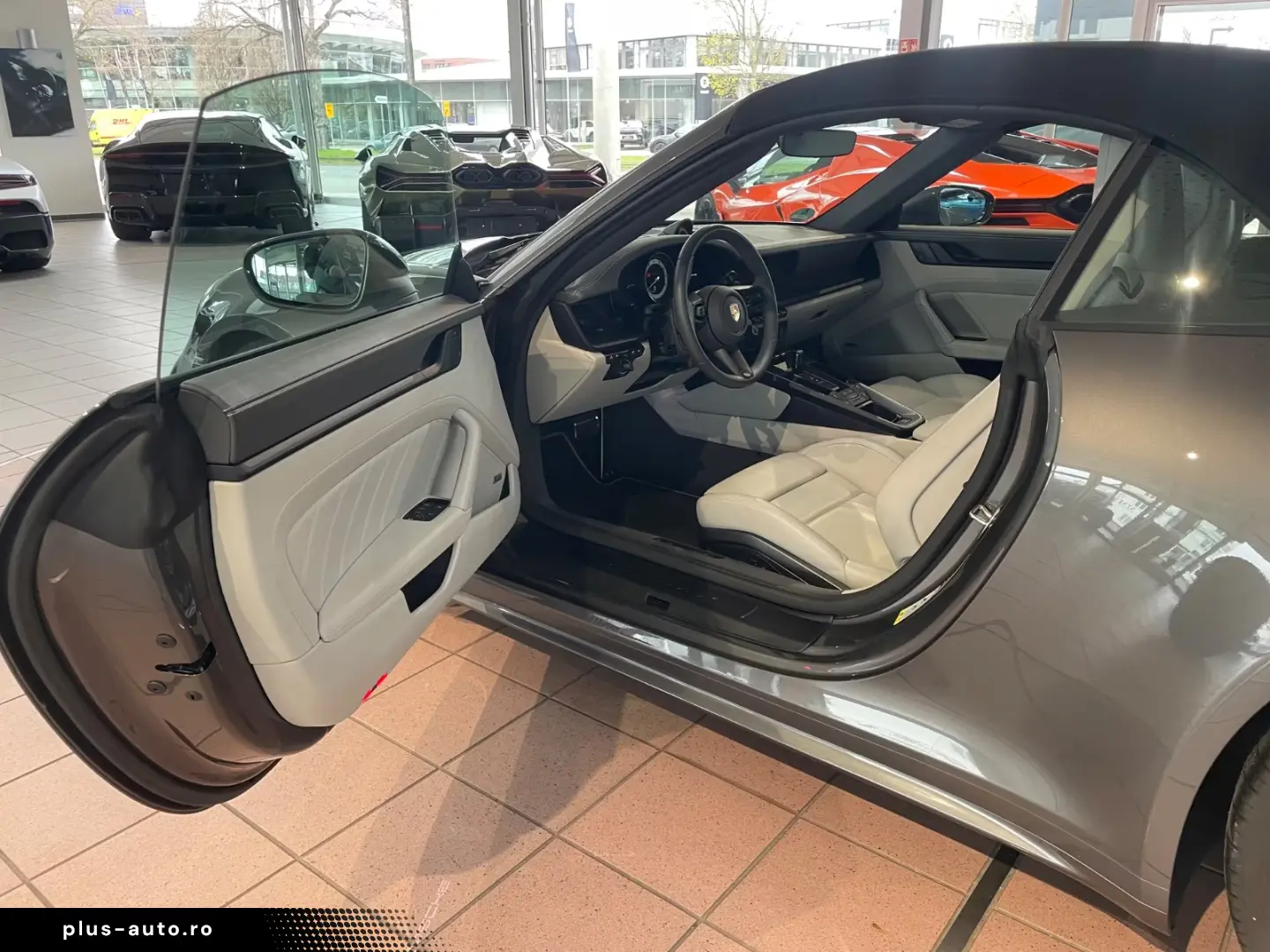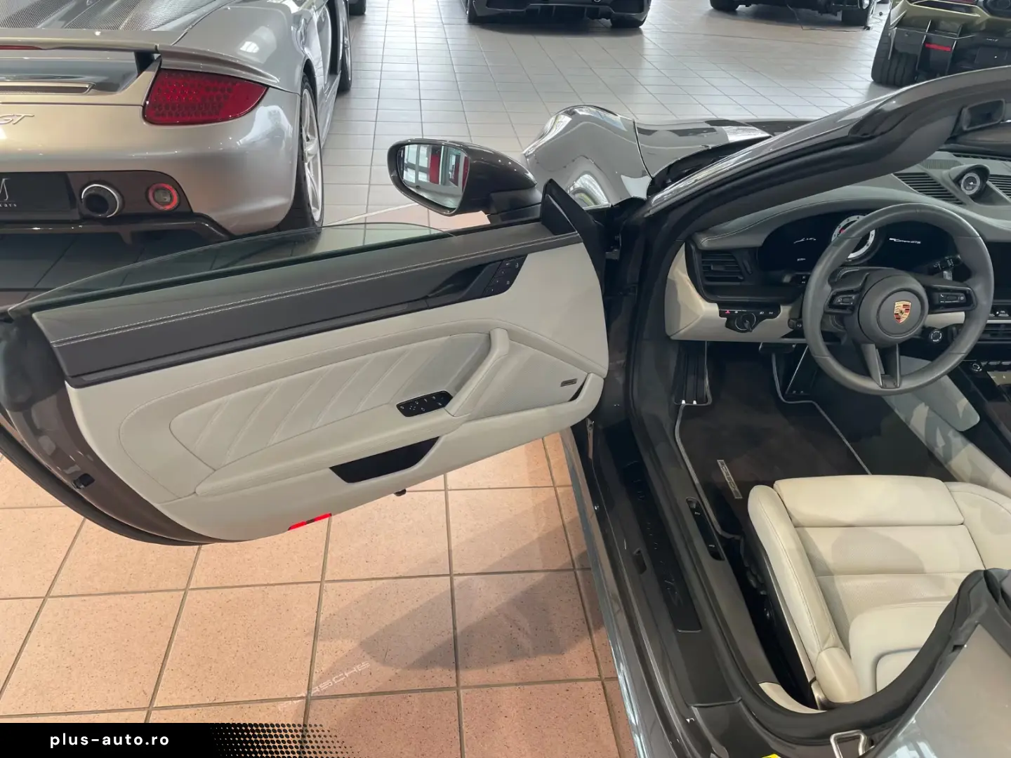 Airbag driver/passenger side, drive type: rear drive, exterior mirror aspherical, left, exterior mirror electric adjustment and heatable, both, exterior mirror lower shell painted, flashing lights LED, convertible, Connect Plus (Bluetooth, Apple CarPlay, WLAN, vehicle tracking system), theft warning system with interior monitoring, rev counter, automatic switch-on system for driving light, entry-level diaphragms with model designation (Aluminum black) Online - Navigation module, Porsche Torque Vectoring Plus (PTV Plus), Radio reception digital (DAB+), Wheel hubs - Covers Porsche coat of arms color, Tire repair kit, Tire pressure control system, Pollutant arm according to exhaust gas standard Euro 6d, Switching/dialing lever handle Alcantara / Race-Tex, Sun visors with mirror (illuminated), Sport exhaust system, End tubes black, Sport-Chrono-Pack
