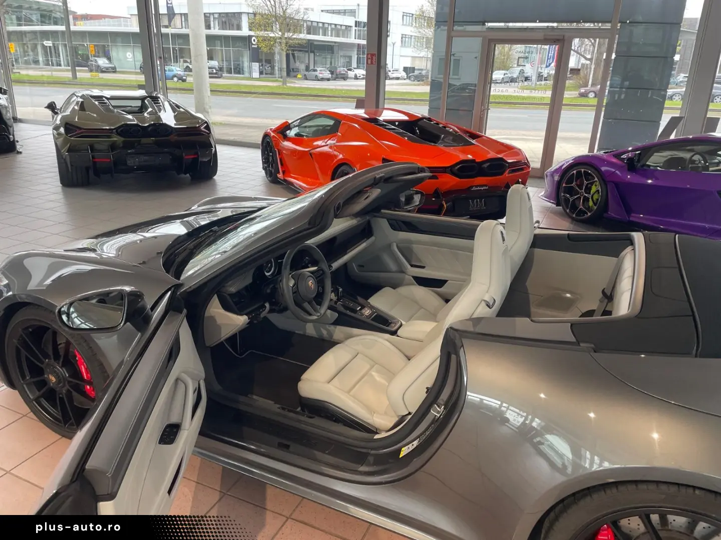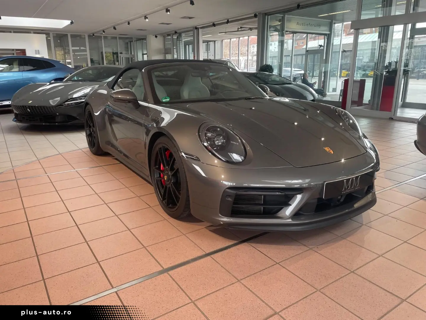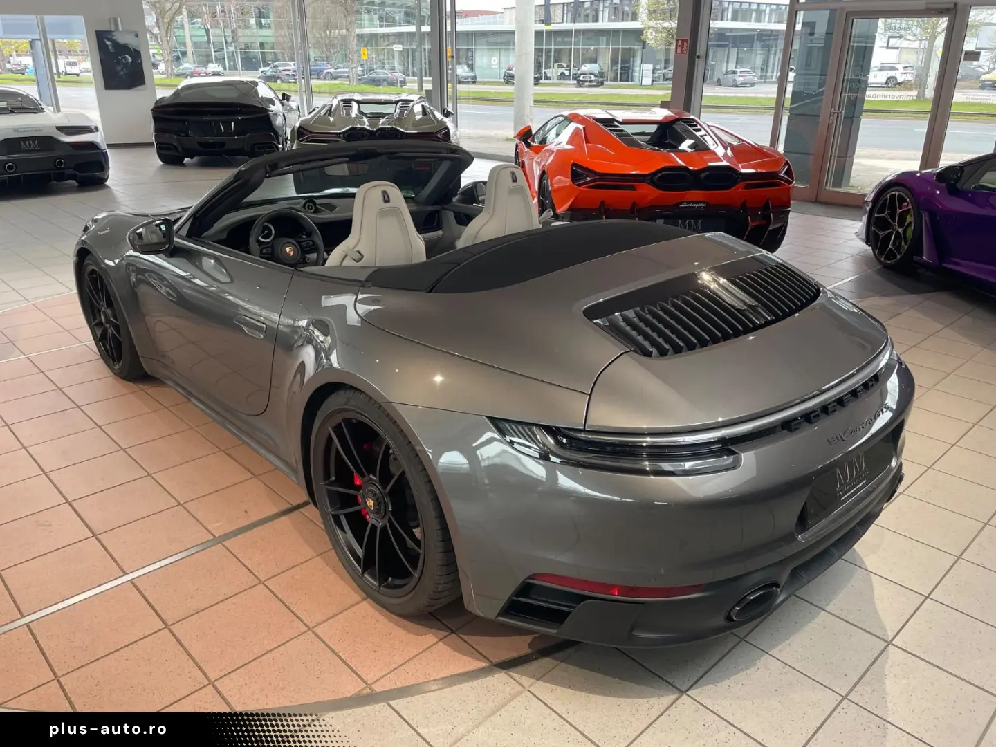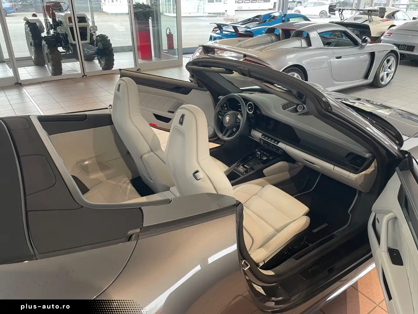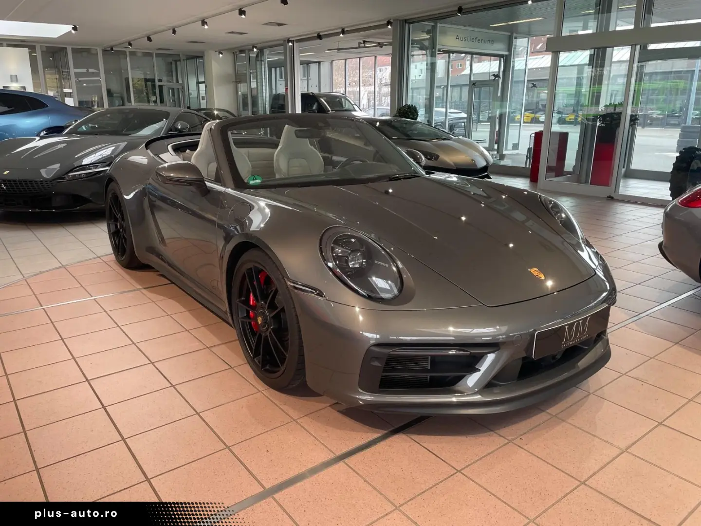 Airbag driver/passenger side, drive type: rear drive, exterior mirror aspherical, left, exterior mirror electric adjustment and heatable, both, exterior mirror lower shell painted, flashing lights LED, convertible, Connect Plus (Bluetooth, Apple CarPlay, WLAN, vehicle tracking system), theft warning system with interior monitoring, rev counter, automatic switch-on system for driving light, entry-level diaphragms with model designation (Aluminum black) Online - Navigation module, Porsche Torque Vectoring Plus (PTV Plus), Radio reception digital (DAB+), Wheel hubs - Covers Porsche coat of arms color, Tire repair kit, Tire pressure control system, Pollutant arm according to exhaust gas standard Euro 6d, Switching/dialing lever handle Alcantara / Race-Tex, Sun visors with mirror (illuminated), Sport exhaust system, End tubes black, Sport-Chrono-Pack