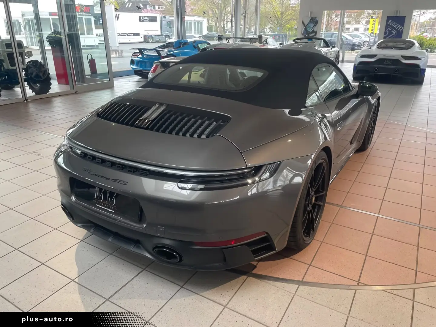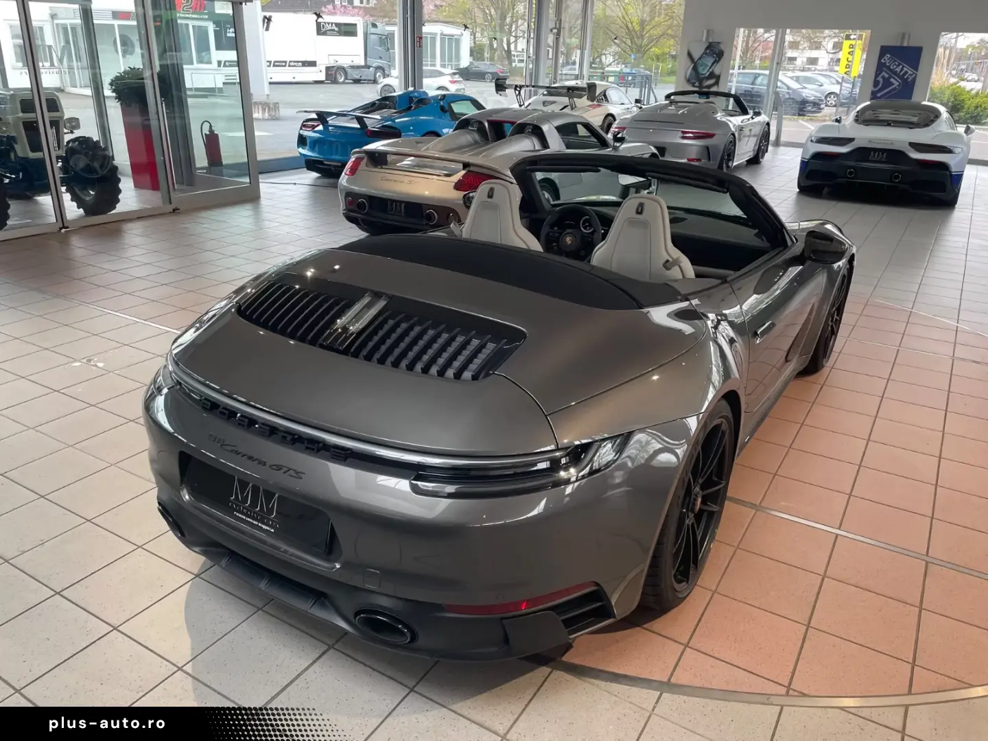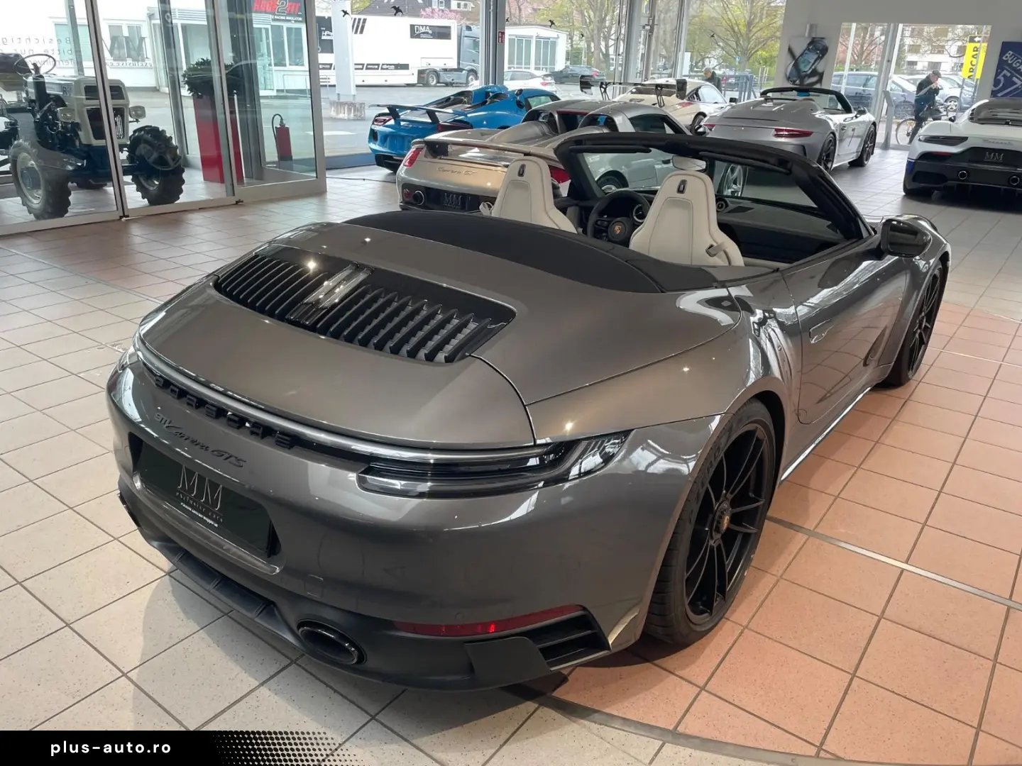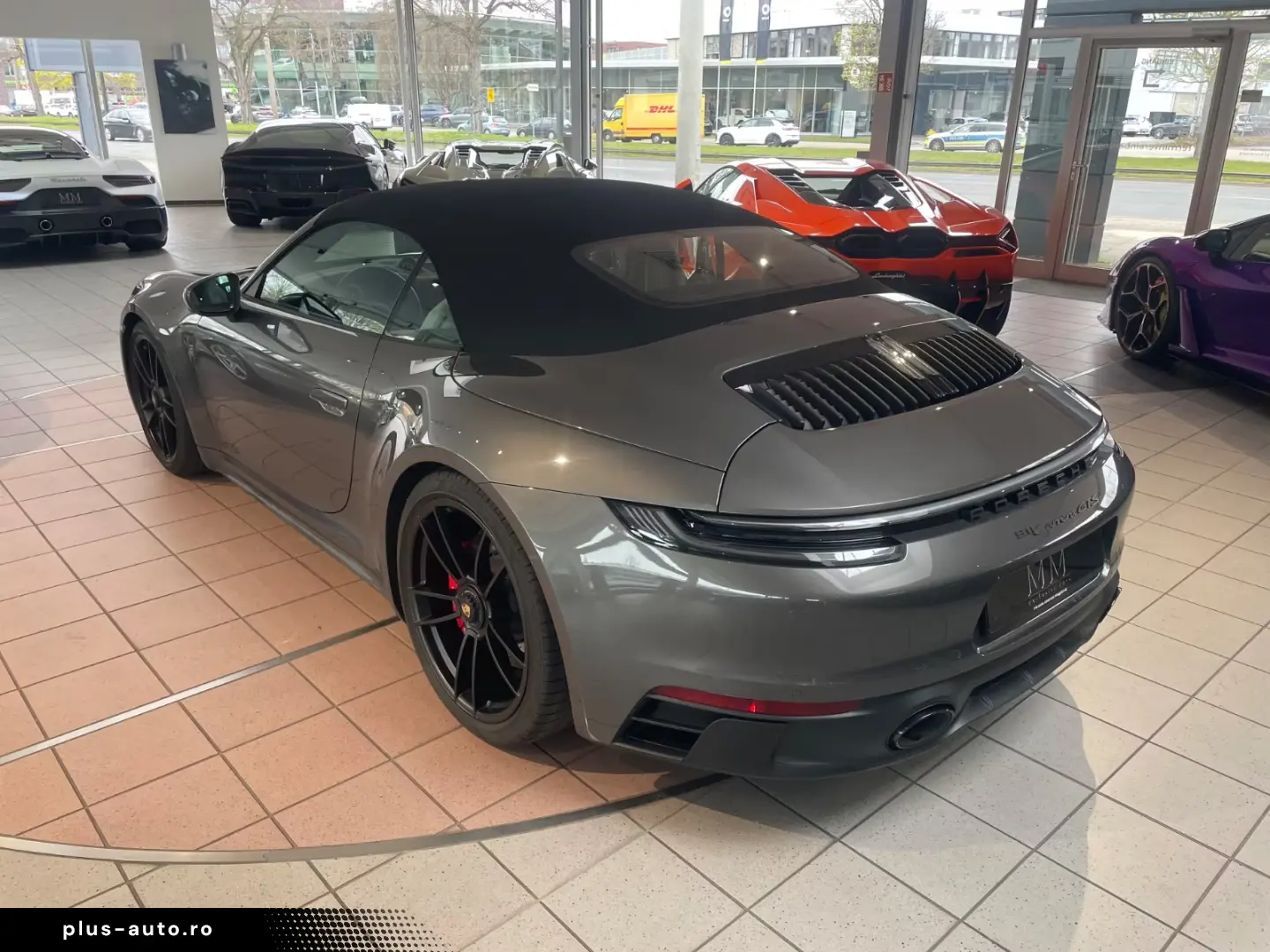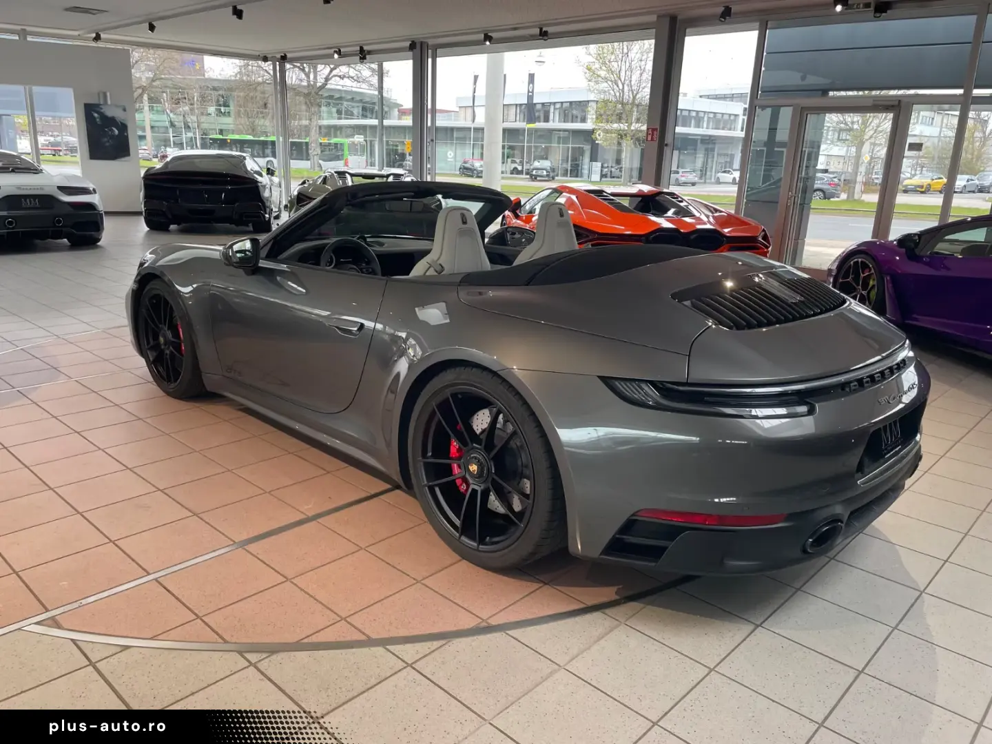 Airbag driver/passenger side, drive type: rear drive, exterior mirror aspherical, left, exterior mirror electric adjustment and heatable, both, exterior mirror lower shell painted, flashing lights LED, convertible, Connect Plus (Bluetooth, Apple CarPlay, WLAN, vehicle tracking system), theft warning system with interior monitoring, rev counter, automatic switch-on system for driving light, entry-level diaphragms with model designation (Aluminum black) Online - Navigation module, Porsche Torque Vectoring Plus (PTV Plus), Radio reception digital (DAB+), Wheel hubs - Covers Porsche coat of arms color, Tire repair kit, Tire pressure control system, Pollutant arm according to exhaust gas standard Euro 6d, Switching/dialing lever handle Alcantara / Race-Tex, Sun visors with mirror (illuminated), Sport exhaust system, End tubes black, Sport-Chrono-Pack