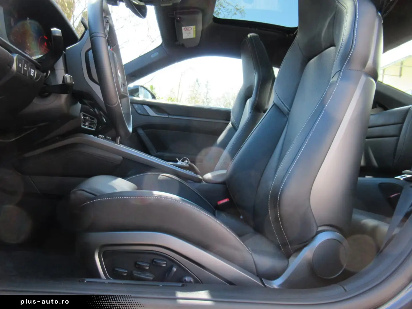 KX FULL LEATHER EQUIPMENT IN BLACK, CONTRAST-SEAM CHALK - Additional leather size to standard equipment: Top panel, bottom panel incl. Glove compartment lid, Top door panel, Door mirror, Side panel center console, Side panel rear, Seat floor, Back seat back front (not in conjunction with order no. Q4Q, Q1J), seat centerway rear, rear seat cheeks, center tunnel rear. In combination with sports seat Plus and Adaptive Sports Seats Plus, back shell painted in Darksilver. In combination with full shell seats, seat shell including seat back made of CfK in visible carbon. With contrast seam in chalk: top panel, upper part door panel, seats front and rear.